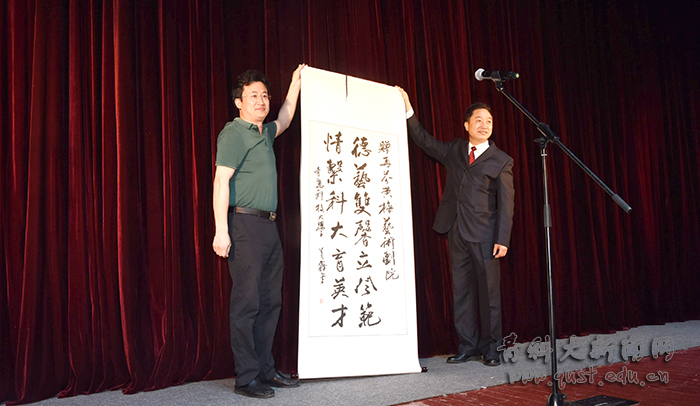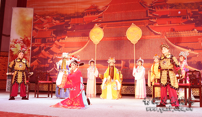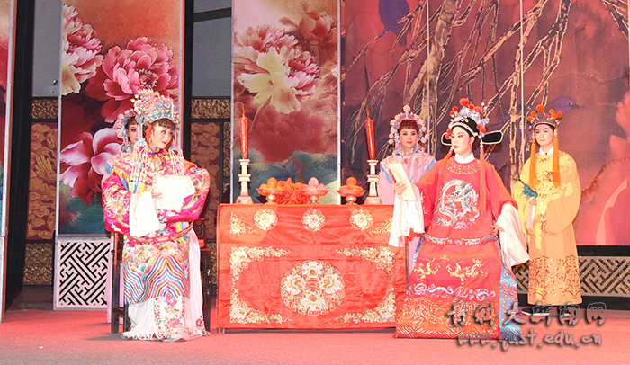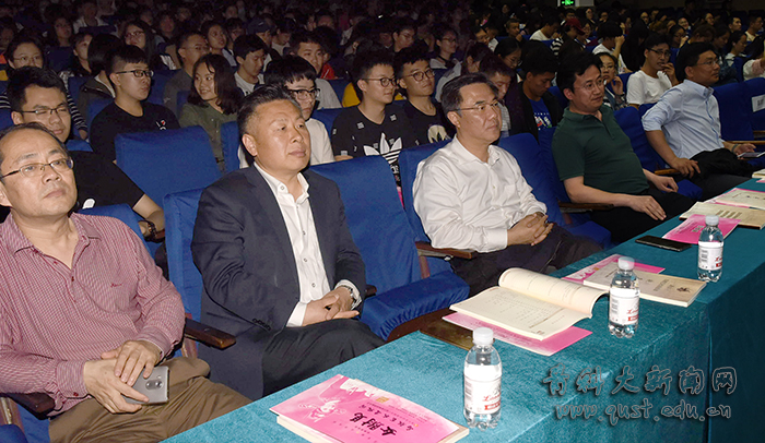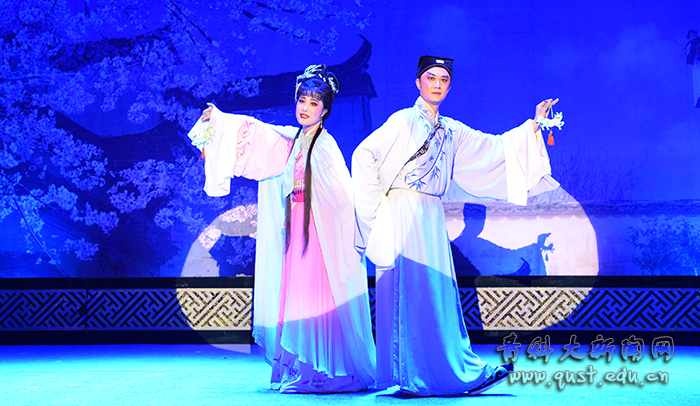 5月17日晚,教育部、文化和旅游部、财政部2018年高雅艺术进校园——再芬黄梅艺术剧院走进青岛科技大学,为师生带来经典黄梅戏剧目《女驸马》。学校党委书记、校长马连湘, 党委(校长)办公室主任郑德前、团委书记王锋业等同1200余名师生员工共同观看演出。